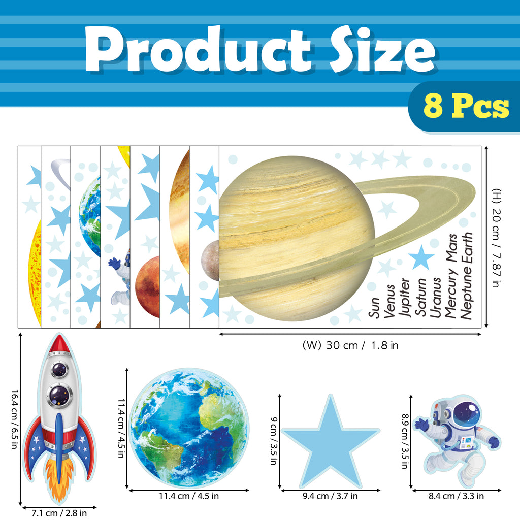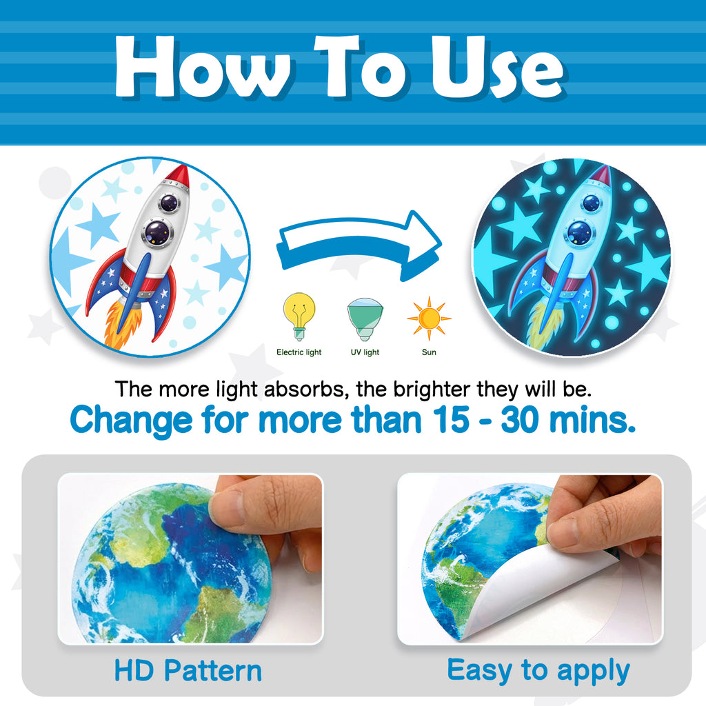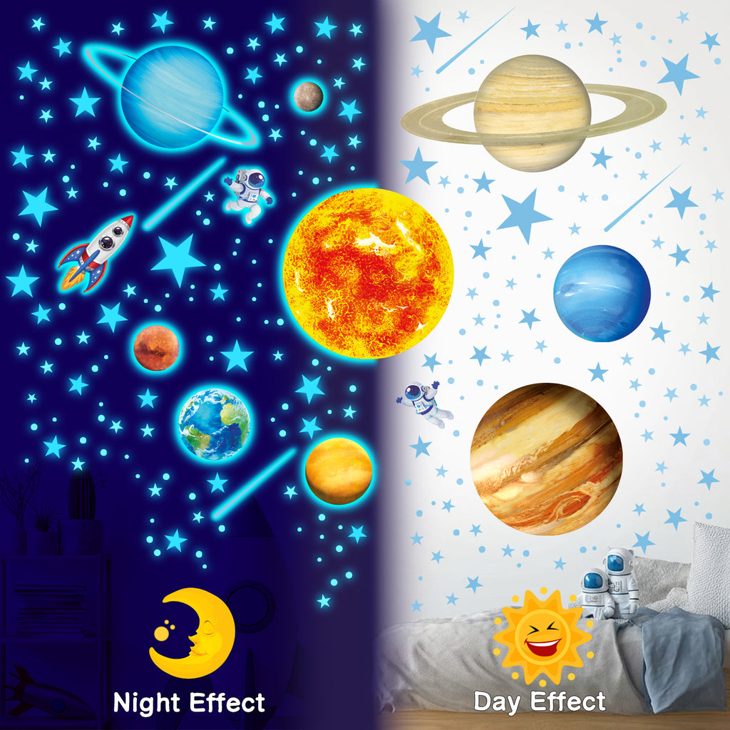 - Glow in the Dark Solar System Wall Stickers - A fantastic set of Glow in the Dark Solar System Wall Stickers, featuring planets, stars, rockets, and astronauts. These fun and educational stickers are perfect for kids' rooms, creating an immersive space adventure.