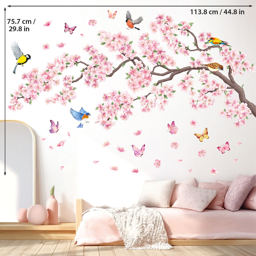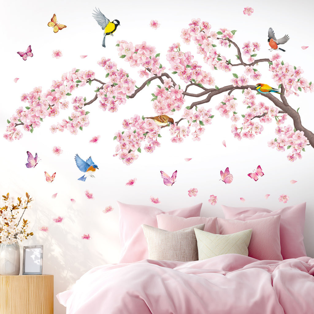 Pink flowers and Bird Wall Stickers