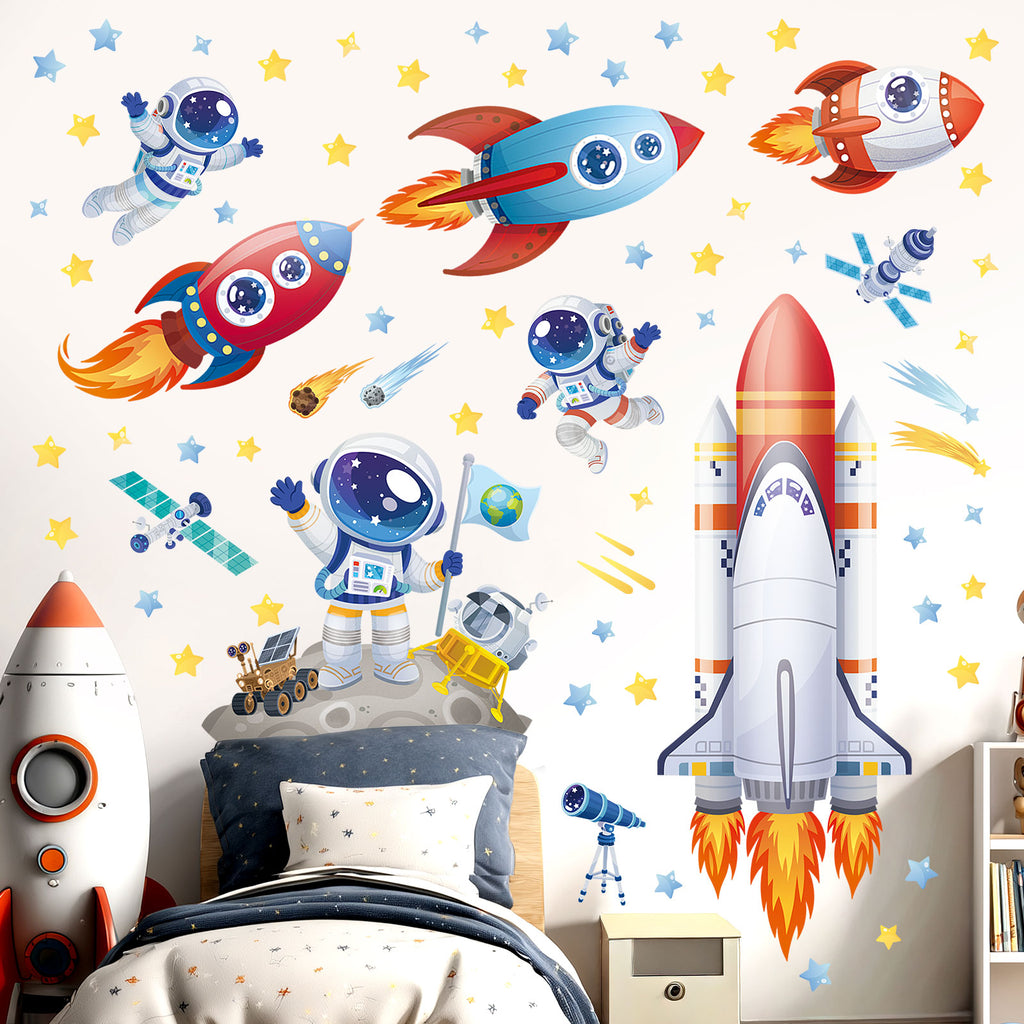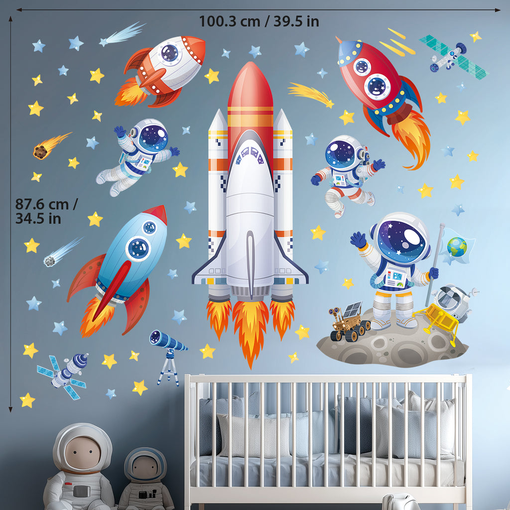 A fabulous set of Rockets and Astronauts are a fantastic collection for boys or girls wall.