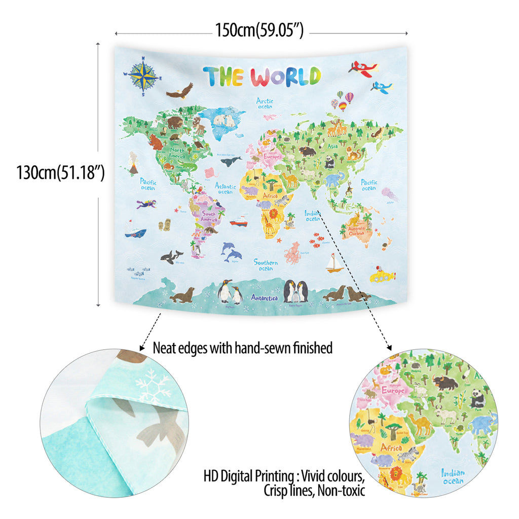 PREMIUM QUALITY & UNIQUE DESIGN: Perfect choice for giving your kids Bedroom & Anywhere a fresh and colorful look also Educational learning Animal of World Map.