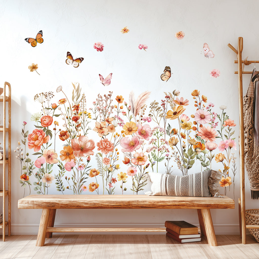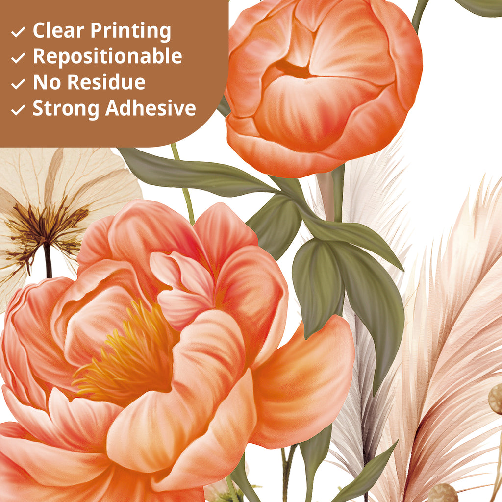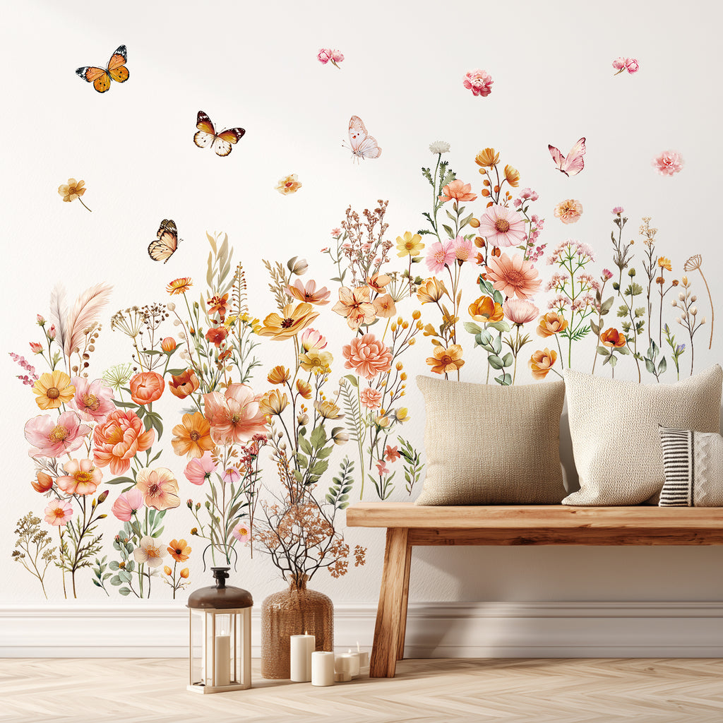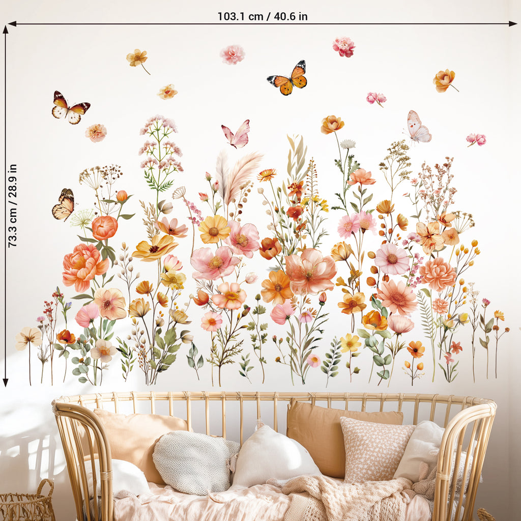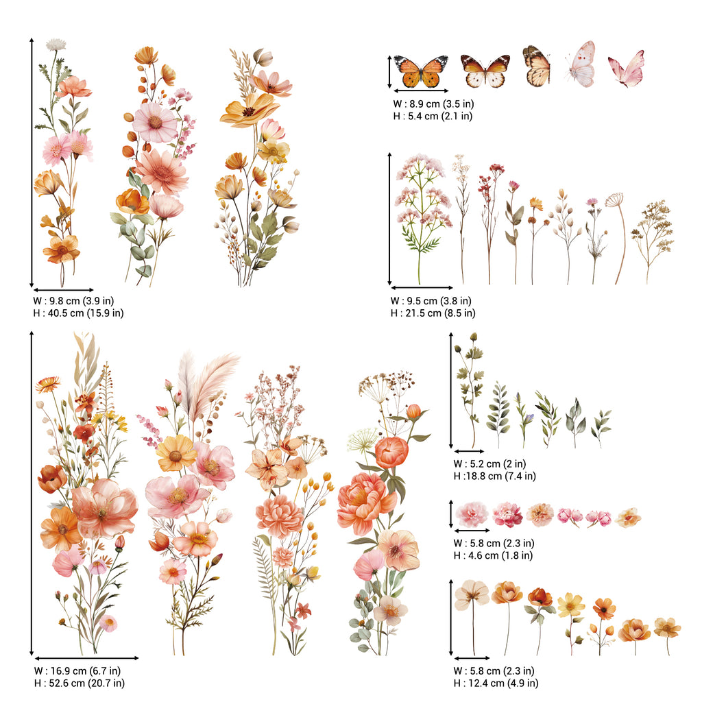 Enhance your home with this beautiful set of Boho Large Flowers Wall Stickers. Featuring an abundance of delicate wildflowers, these decals can be arranged in patterns to create stunning, personalized wall designs that bring boho charm to any room.