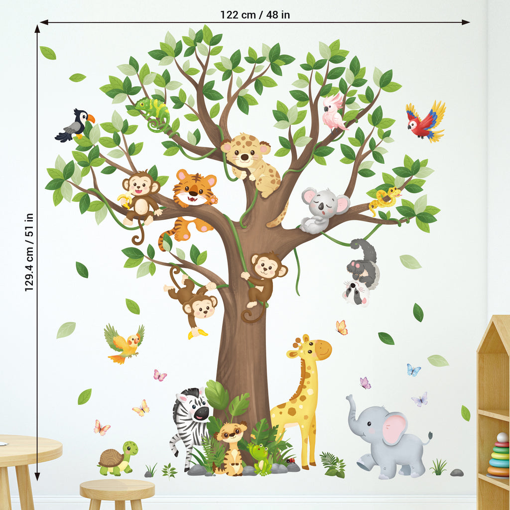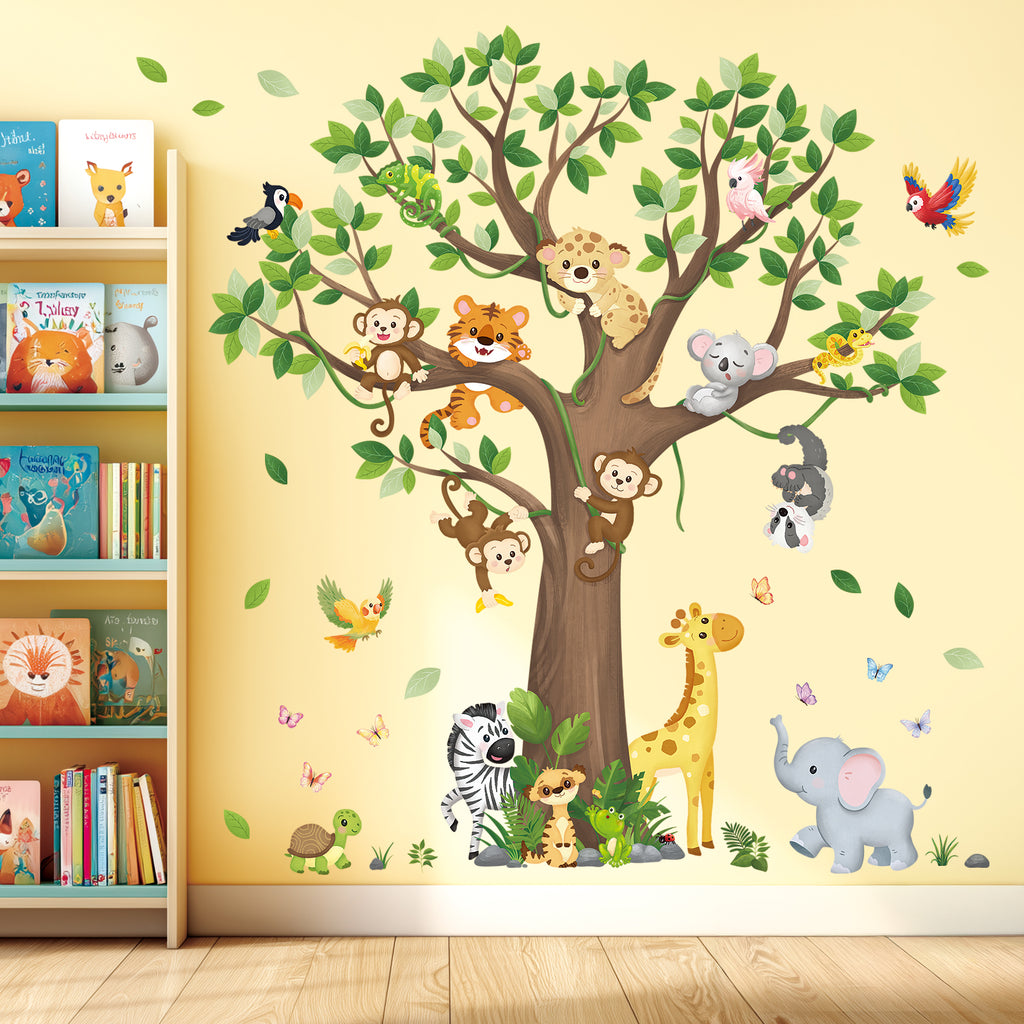 Bring the jungle to life with this beautiful set of Large Tree Jungle Animals Wall Stickers. Featuring a variety of animals nestled around a majestic tree, it creates a lush, vibrant atmosphere that transforms any room into a jungle adventure.