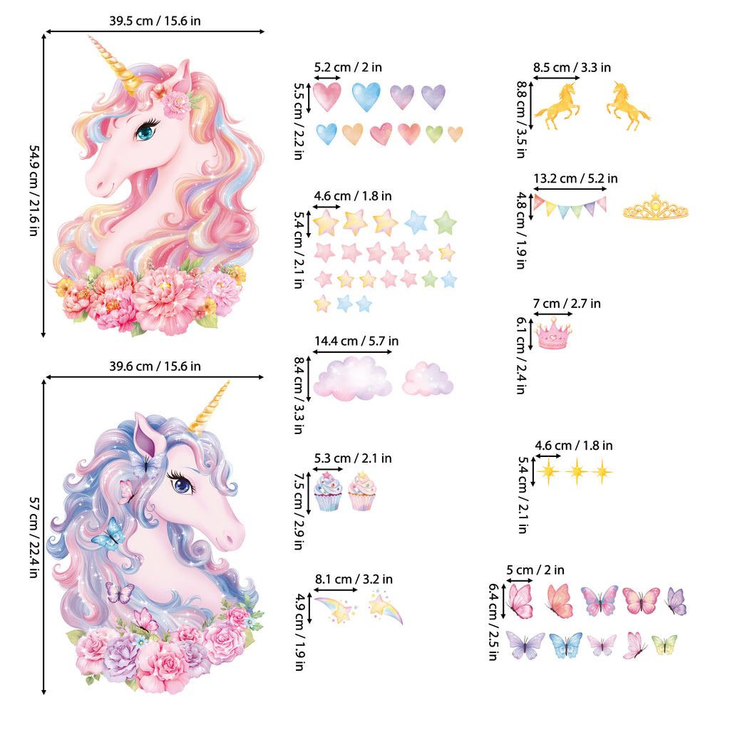 A fabulous set of Two Large Size Unicorns are a fantastic collection for boys or girls wall.